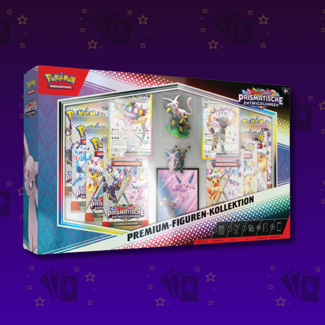 Die Pokemon Prismatische Entwicklungen Premium-Figuren-Kollektion (deutsch) enthält: