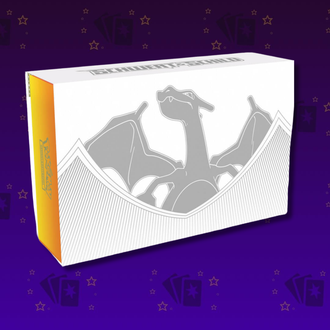 Feiere die Serie Schwert & Schild und die Ära von Pokémon-V, Pokémon-VMAX und Pokémon-VSTAR mit einem feurigen Gesellen, der seine Kraft zu nutzen weiß! Glurak sorgt mit drei geprägten holografischen Promokarten für hitzige Zeiten und seine Gigadynamax-Form erglüht geradezu auf einer Spielunterlage, einer Münze und einem Kartenhüllen-Set. Metallene Würfel und Marken für Spezielle Zustände vervollständigen dieses ultimative Set an Spielzubehör. Und wenn du den riesigen Stapel Boosterpacks aus dieser Kollektion öffnest, erwartet dich eine Reise durch die Serie Schwert & Schild mit einer Spielanleitung voller Illustrationen und Daten!